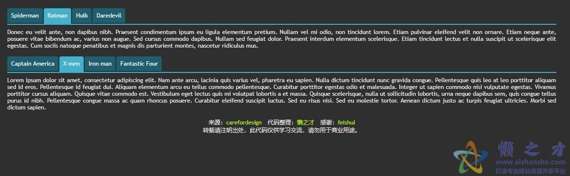 jquery实现的非常简单实用tab选项卡切换效果,代码非常简单,自己定义好相关的html标签即可,选项卡切换流畅,经测试切换过程带有渐变效果,简单实用。